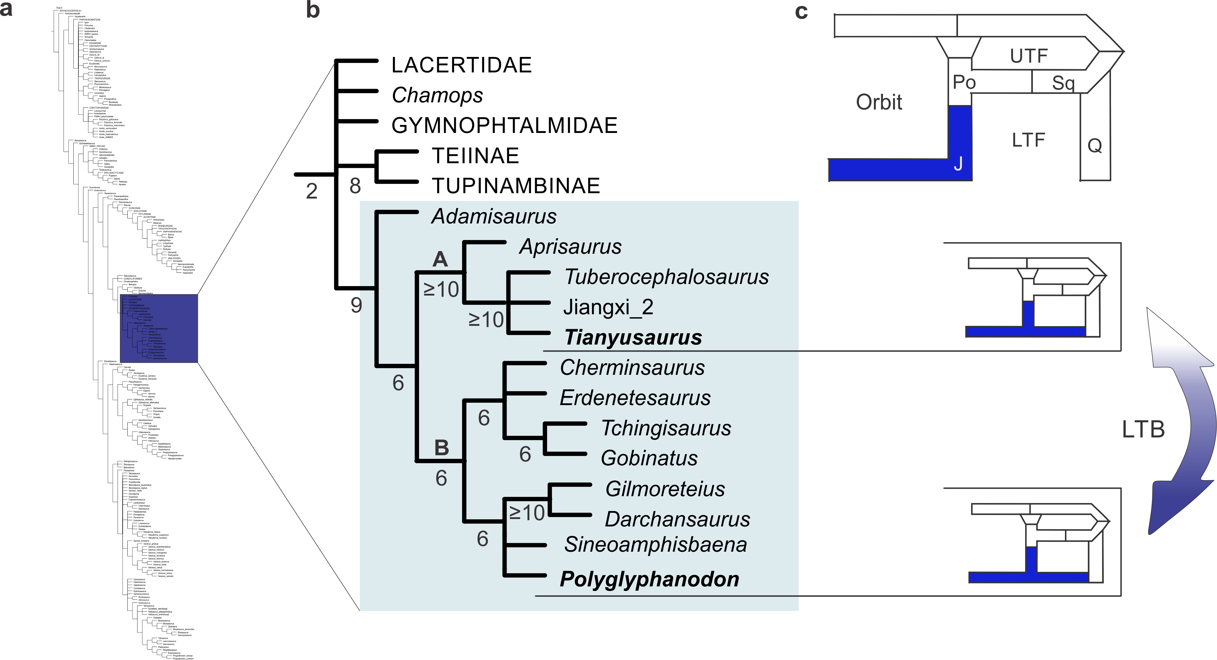 Simões, T. R., Funston, G. F., Vafaeian, B., Nydam, R. L., Doschak, M. R. & Caldwell, M. W. 2016. Reacquisition of the lower temporal bar in sexually dimorphic fossil lizards provides a rare case of convergent evolution. Scientific Reports, 6 (24087).