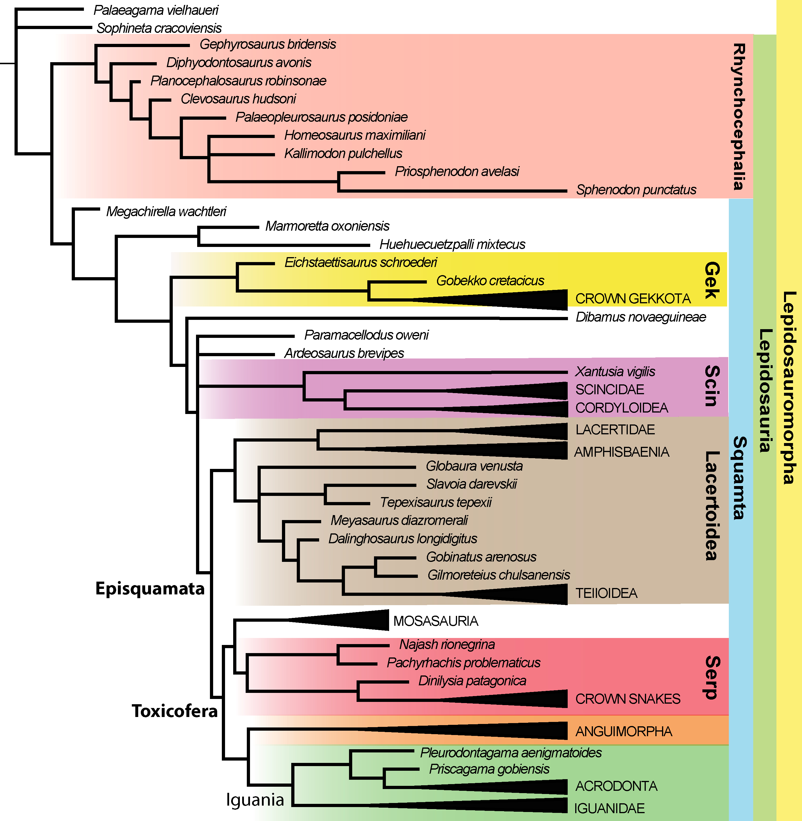 Simões, T. R. & Pyron, R. A. 2021. The Squamate Tree of Life. Bulletin of the Museum of Comparative Zoology, 163(2), 47-95. DOI: 10.3099/0027-4100-163.2.47